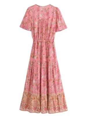 Boho Floral Maxi Dress in Soft Pink