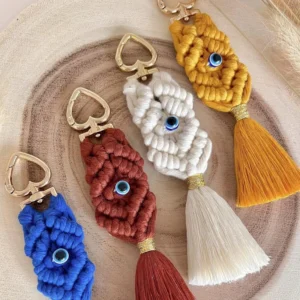 Boho Evil Eye Crochet Keychain Bag Charm with Tassel Detail