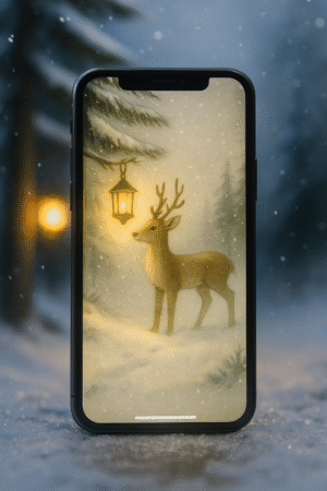 Lantern-Lit Winter Deer – Christmas Boho Phone Wallpaper